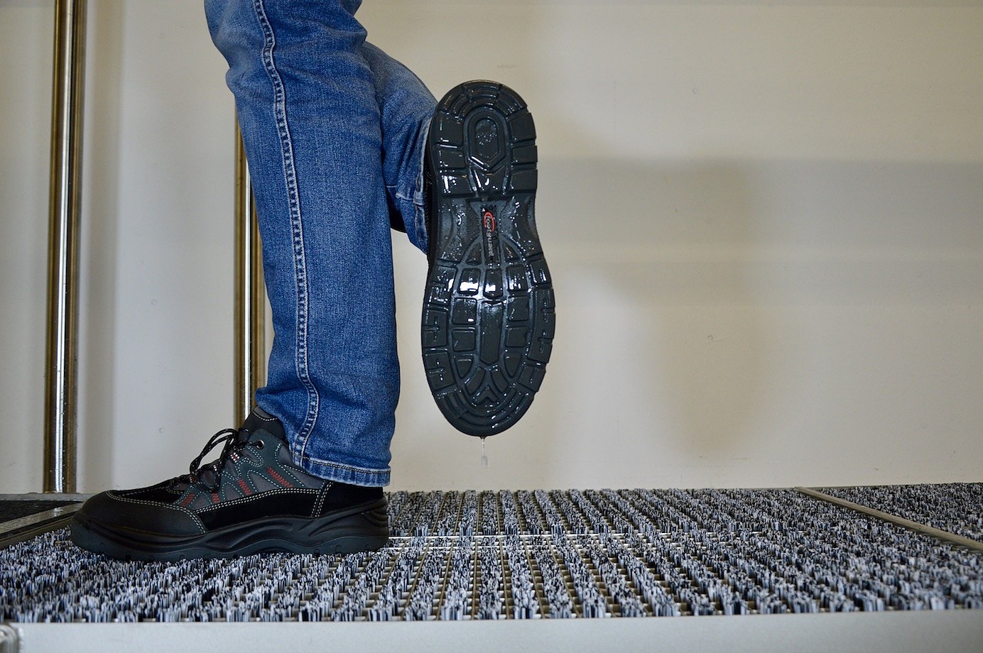 The StepGate stainless steel personnel sluices are ideal for entrances to sensitive production areas. When entering, the soles are cleaned mechanically and by fluid using obliquely arranged patented brush strips. The cleaning process is chemically assisted by the addition of disinfection and / or cleaning detergents. The filling level of the cleaning liquid in the stainless steel lower trough determines the cleaning intensity.